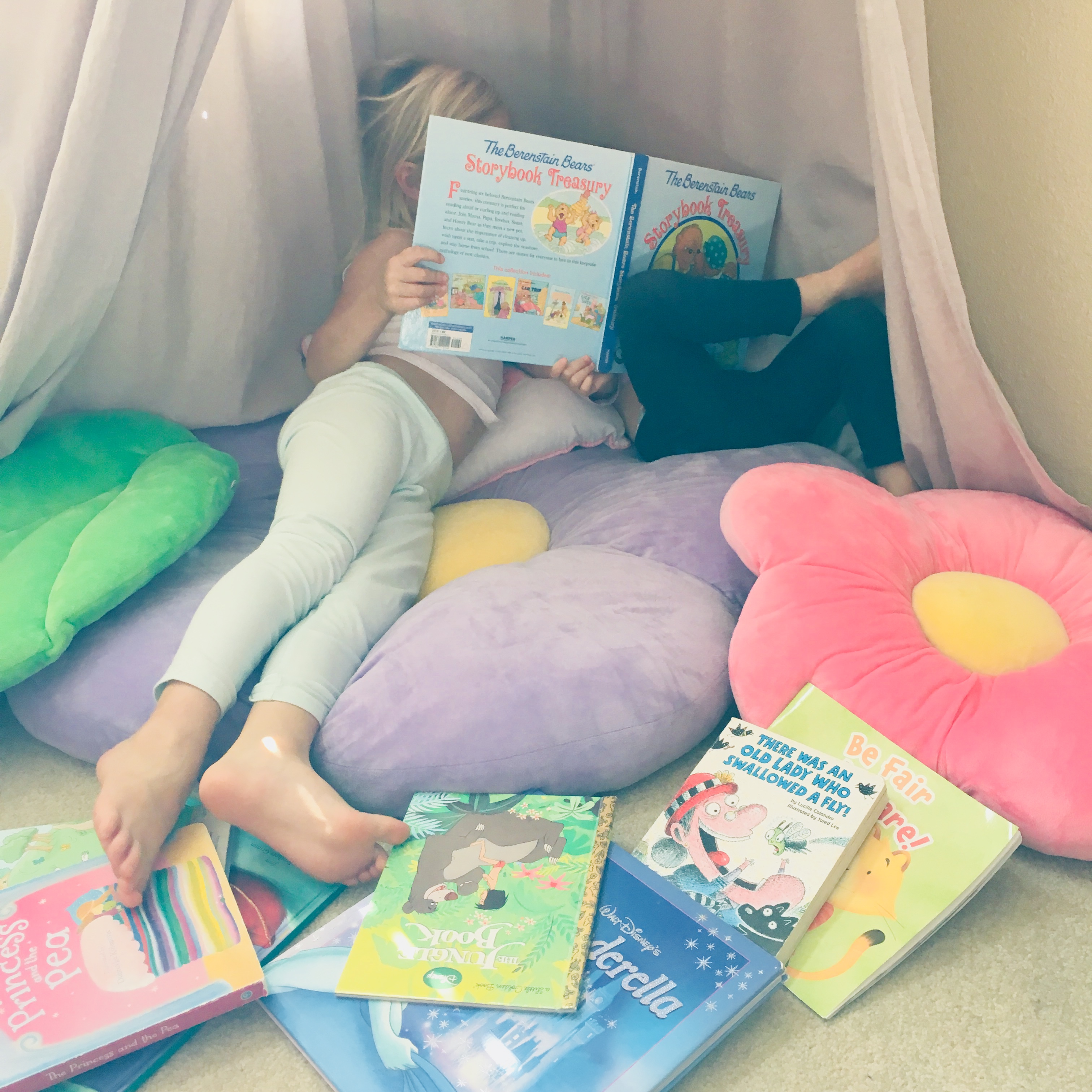 But, and it’s a big BUT, I know that reading in front of my kids is one of the best things I can do for them. Besides the obvious of encouraging literacy, books increase the child’s vocabulary, nurture empathy, foster curiosity, and build the imagination. They teach about the past and speculate about the future.